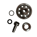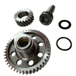 Calibre el punto de distribución con marcas de fábrica. Alinee piñones y verifique juego axial del árbol.